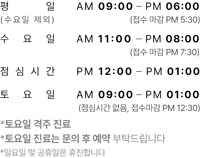 *해당 온라인 예약(네이버 예약)은 확정이 아닙니다. 고객님과 전화통화 후 희망 진료일자 예약이 최종 확정됩니다.